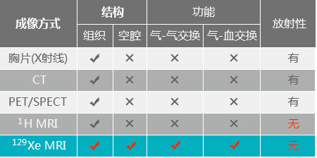 可非侵入、無(wú)輻射的對(duì)肺部進(jìn)行早期診斷,除肺部結(jié)構(gòu)信息外還可探測(cè)CT探測(cè)不到的肺部氣血(氣)交換等功能信息